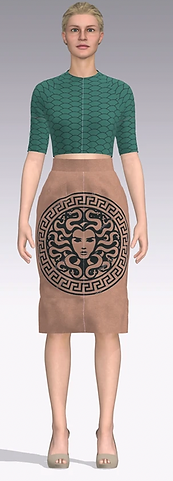 Using an already existing design, we had to import it into CLO and recreate the pattern in the program. With that, we had to come up with a print and 3 different colorways. This design is athletic 2-piece set based off the myth of Medusa.